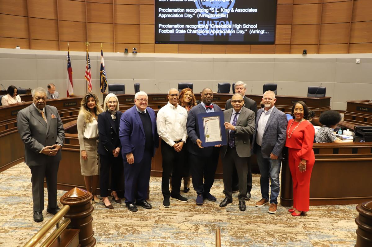 On January 21, 2026, the Fulton County Board of Commissioners recognized S. L. King & Associates, Inc. for 30 years of exemplary leadership, innovation, and stewardship in support of Fulton County's infrastructure needs, and hereby proclaims January 17th, as "S. L. KING & ASSOCIATES, INC. APPRECIATION DAY" in Fulton County, Georgia. S. L. King & Associates, Inc. (SLKA) has delivered major Fulton County public infrastructure improvements, and multiple facility modernization projects; and SLKA has enhanced regional water and wastewater systems through engineering leadership on Camp Creek, Johns Creek Environmental Campus, and Big Creek Water Reclamation Facilities, earning state and national awards, including the 2025 ASCE Project of Excellence and the 2025 ACEC State Award amongst other awards with its respective collaborative team.